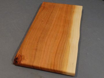 These charcuterie boards feature a refined natural edge. They have been finished with food grade mineral oil and Howard's Butcher Block Conditioner. They can be revitalized at any time with a butcher block conditioner. Research at the University of Wisconsin involved the testing of wooden boards to see how long bacteria could survive on the surface. The test results indicate that the surface of a wooden board will actually stop dangerous bacteria from multiplying, and germs simply die out after